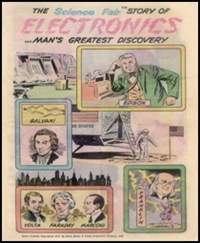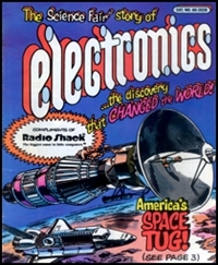 These comics were initially titled, The Science Fair Story of Electronics. They were later titled, Radio Shack Presents the History of Electronics. Within these colorful comic books, a teacher instructs her students on the history of science, giving lessons on astronomy, space travel, electricity, electronics, energy, computers, and new developments in electronics. Production and distribution of the comic books was coordinated by Bill Palmer, Director of In-House Publications.