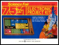 1-Tube AM Radio Kit 28-100, 2-Transistor FM Radio Kit 28-115, 2-Transistor Radio Kit 28-102, 2-Way Intercom Amplifier Kit 28-127, 3-Transistor Short Wave Radio Kit 28-110, 3-Way Code Oscillator Kit 28-105, 5-Transistor Am Radio Kit 28-253, 8-Transistor Am Radio Kit 28-222, 30-in-1 Electronic Projects Lab 28-161, 50-in-1 Electronic Project Kit 28-201, 60-in-1 Electronic Project Lab 28-256, 60-in-1 Electronic Project Lab 28-261, 75-in-1 Electronic Project Kit 28-247, 100-in-1 Electronic Project Kit 28-220, 100 Khz Frequency Standard Kit 28-140, 130-in-1 Electronic Project Lab 28-259, 150-in-1 Electronic Project Kit 28-248, 160-in-1 Electronic Project Kit 28-598, 200-in-1 Electronic Project Kit 28-249, AC/DC Ohms Indicator Kit 28-141, AC/DC power Supply Kit 28-104, Acid Rain & Water Quality Analyzer 28-142, Aeronautical Lab Kit SFX-4000, AM Broadcaster Kit 28-209, AM Short Wave Radio Kit 28-176, AM VHF Monitor Radio Kit 28-163, Bell/Buzzer Code Key Kit, 28-112, Crystal Radio Kit 28-207, Digital Computer Kit 28-218, Electro-Magnetic Experiment Kit 28-2 2, Electronic Computer Kit 28-180, Electronic Computer SF-5000, Electronic Digital Computer 28-199, Electronic Digital Logic Lab Kit 28-226, Electronic Organ Kit 28-101, Electronic Organ Kit 28-215, Electronic Siren Kit 28-107, Electronic Snap Kit 101 28-286, Electronic Snap Kit 303 28-288, Electronic Song Bird Kit 28-239, Extension Speaker Kit 28-123, Fire Alarm Kit 28-117, FM Wireless Microphone Kit 28-109, Goofy Lite Kit 28-130, Heads Tails Game 28-124, Indoor Outdoor Thermometer Kit 28-135, Inst-a-Plate (electroplating) Set 28-203, Junior Architect 28-187, Lie Detector Kit 28-182, Light Operated Alarm Kit 28-128, Logix Electronic Computer SF-5000, Metal Locator Kit 28-181, Metronome Kit 28-118, Microcomputer Trainer 28-260, Moisture Detector Kit 28-132, Optical Lab Kit (SF-3000), Organ Kit 28-101, "OTL" Audio Amplifier Kit 28-106, Photo Electric Nite Lite Kit 28-126, Physics Experiments 28-193, Power Supply Kit (Archer) 277-125, Psycholite Kit 28-171, Sci Lab Kit 28-189, Short Wave Radio Kit 28-110 Solar Operated Radio Kit 28-129, Solar Power Electronic Lab Kit 28-246, Stereo Amplifier Kit 28-113, Stereo Preamp Kit 28-114, Super Snooper Kit 28-120, Telephone Amplifier Kit 28-116, Time Base Generator Kit 277-115, VHF Receiver Kit K8-221, VOM Meter Kit 28-112, Wireless AM Mike Kit 28-103.